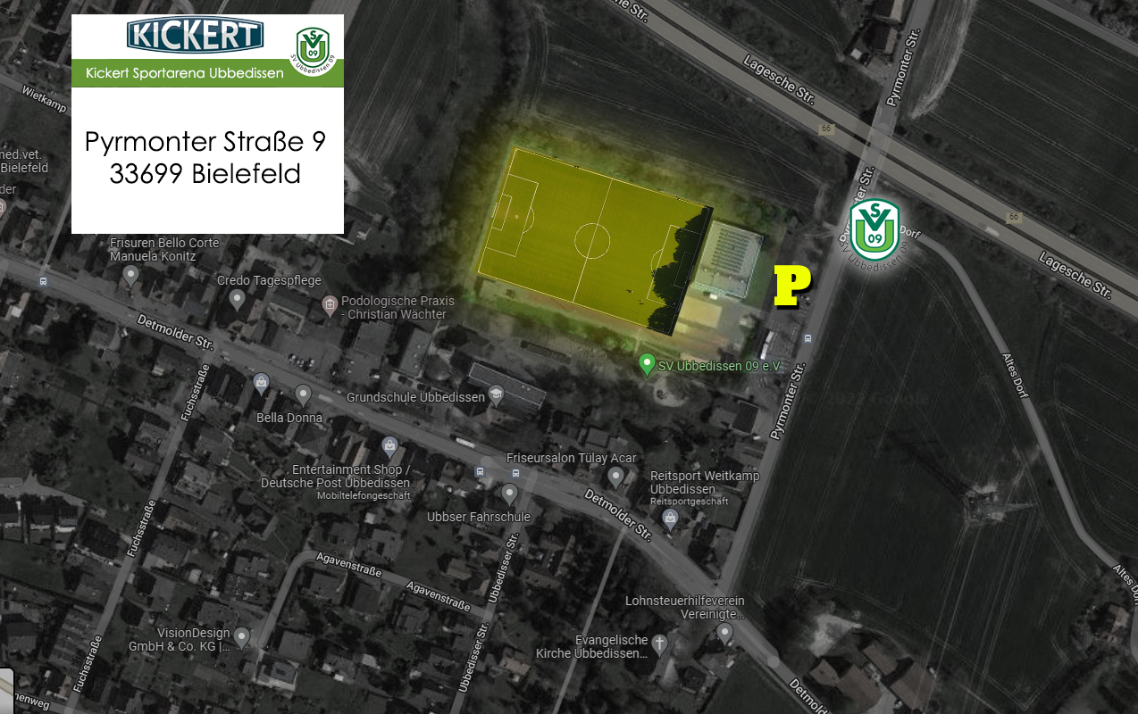 Pyrmonter Str. 933699 BielefeldParkplätze vor der Turnhalle.Bitte nicht die gekennzeichneten Plätze für die Busse und die Feuerwehr benutzen!